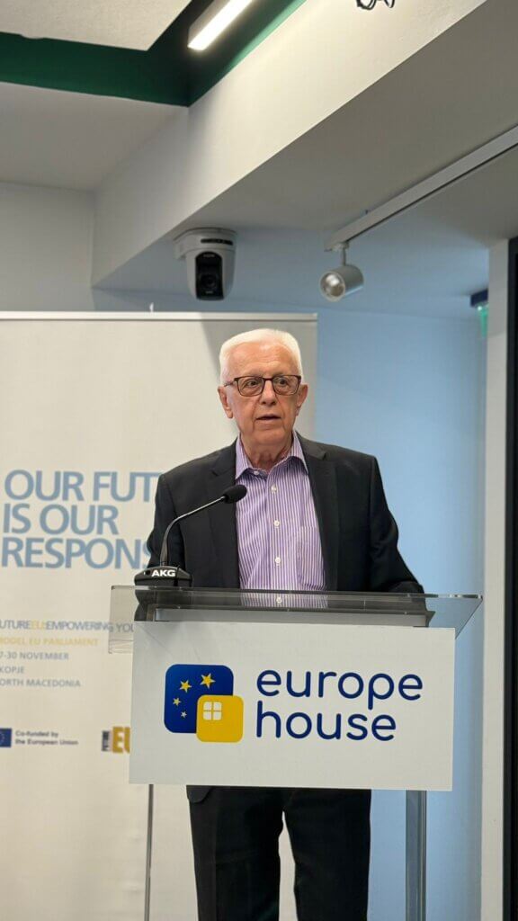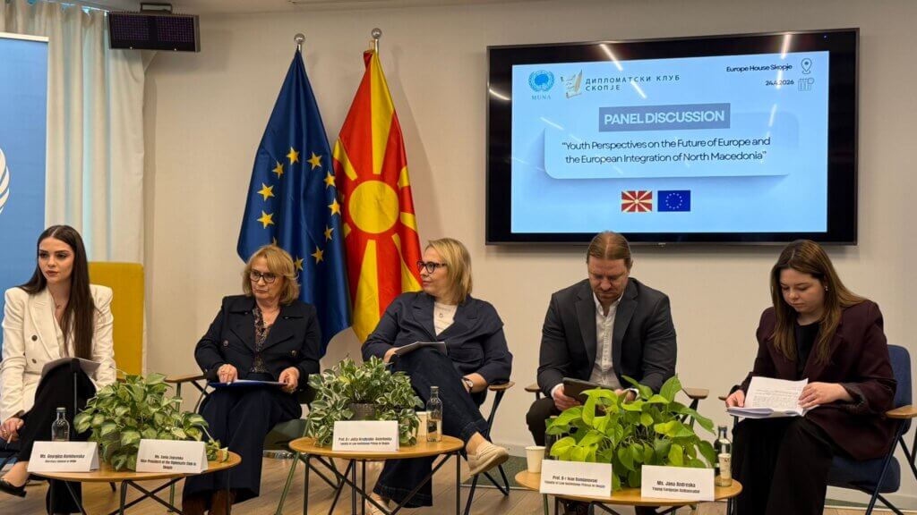 Во организација на Дипломатскиот клуб-Скопје (ДКС) и Асоцијацијата на Обединетите нации во Северна Македониja (МУНА) во седиштето на Европската куќа во Скопје, на 24 април, 2026 година се одржа панел-дискусијата на тема „Младински перспективи за иднината на Европа и европската интеграција на Северна Македонија“,
